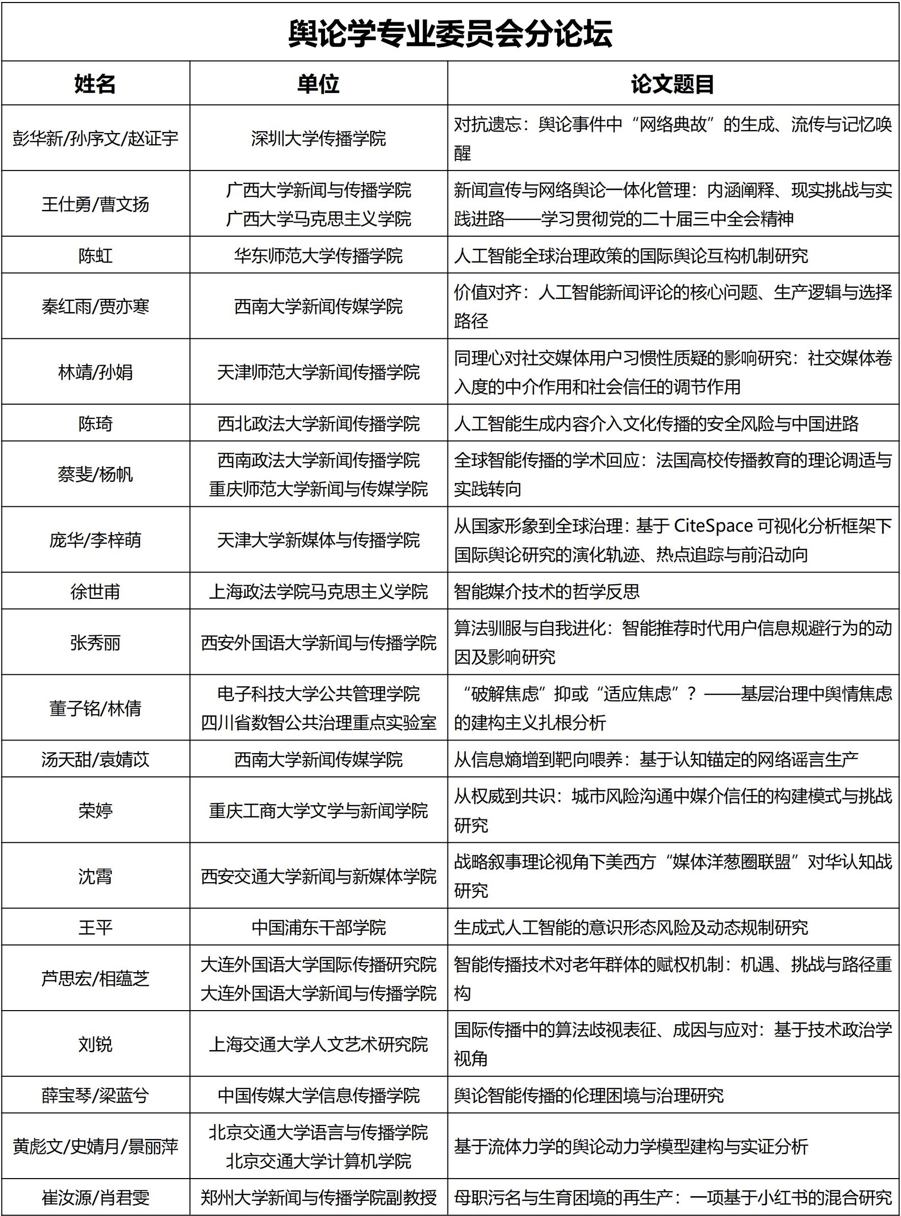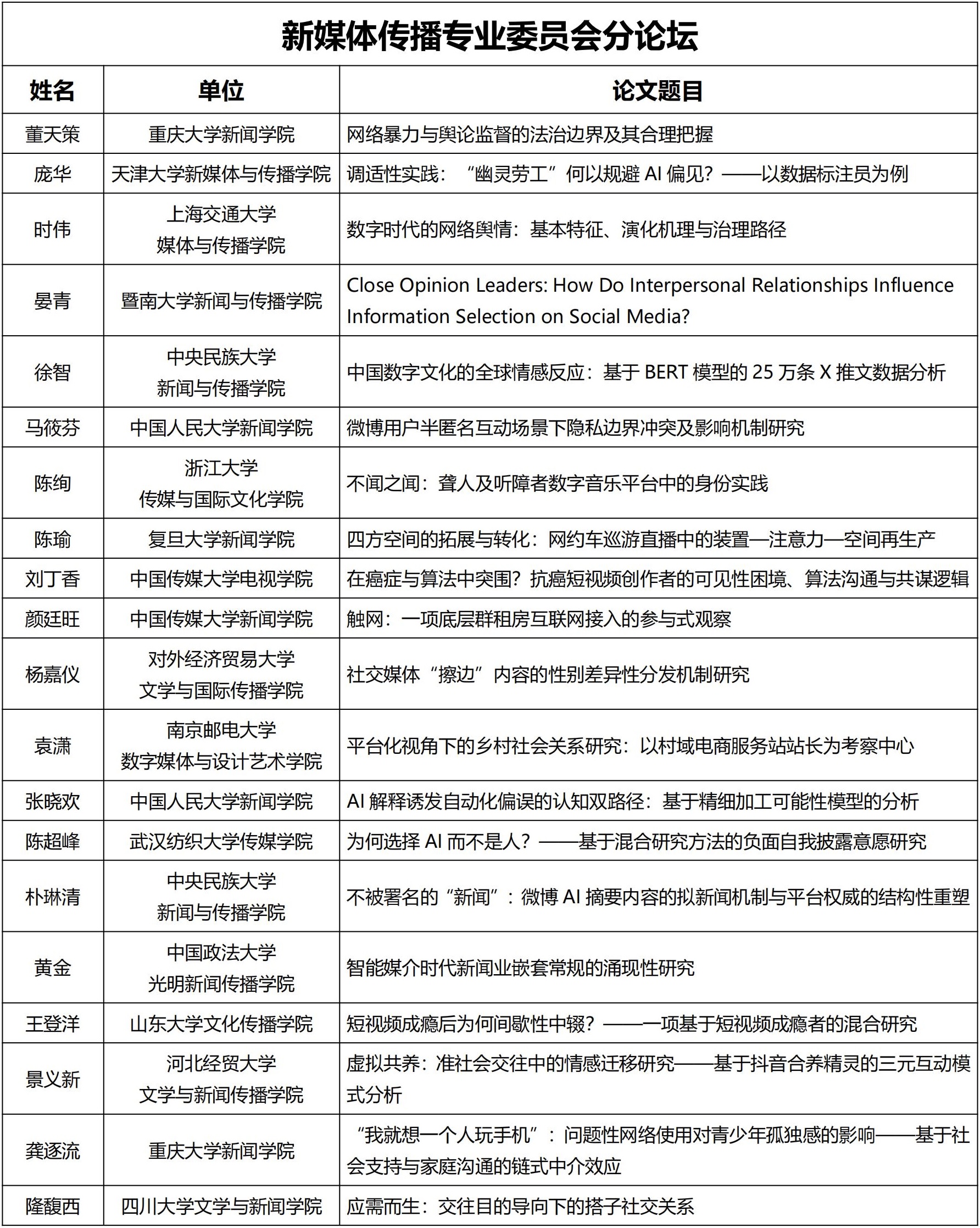 经严格评审,入选中国新闻史学会2025学术年会的论文及作者信息如下: